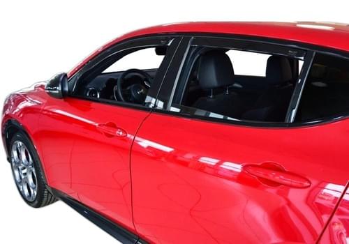 アフターマーケットパーツでありながらヨーロッパでISO 9001 認証取得した EU アルファロメオ の OEM サプライヤー によって製造された サイドバイザーセット となります。アルファロメオ TONALE 専用にデザインされ、カーボンピラーカバーも同時装着が可能。UVカット機能はもとより、耐候性、耐紫外線性、耐腐食性に優れた PLEXIGLASS® 素材を採用。高速走行時の風切り音を配慮するとともに TONALE のボディーラインに合わせ専用設計された、日本国内では入手困難な サイドバイザーセット 待望の国内初入荷。※このアイテムは送料無料となります。
